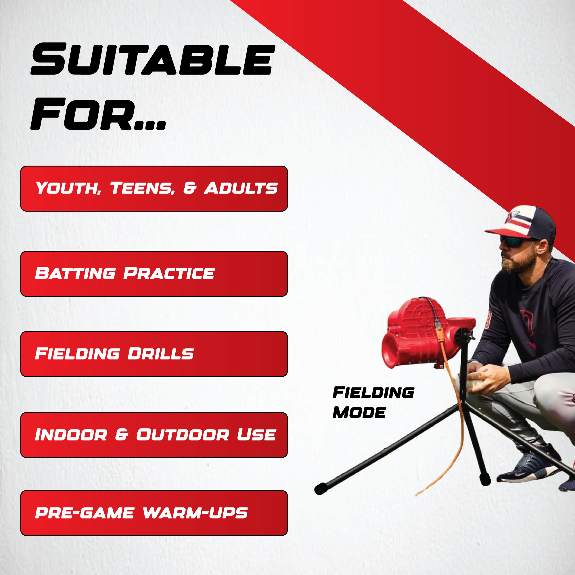 • Fielding Functionality: Pitches grounders, line drives, and pop flies up to 200 feet, perfect for practicing defense and improving reaction time and coordination in the field.